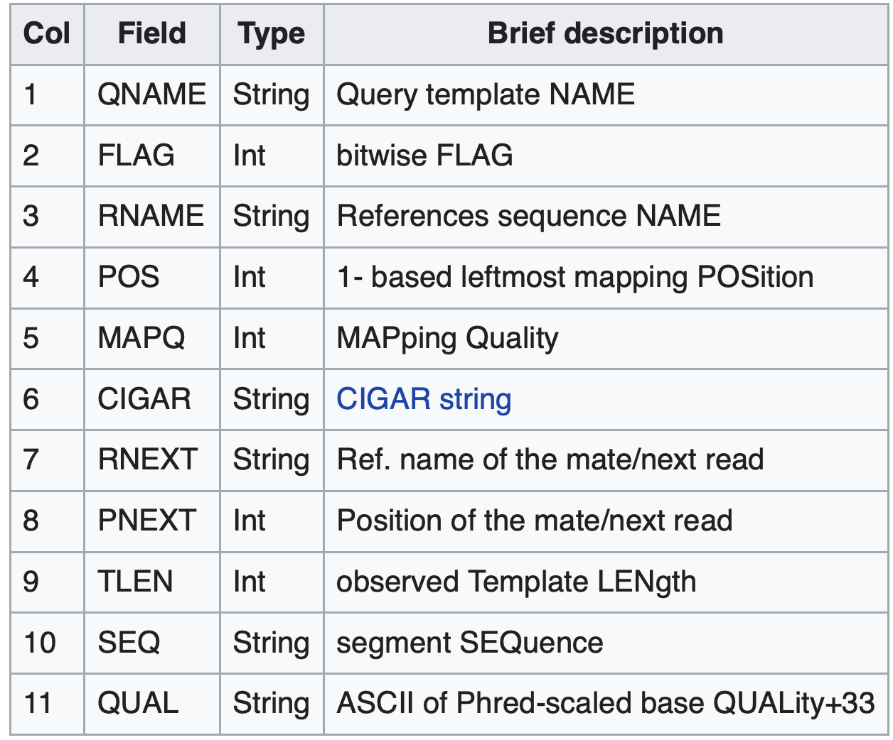 I file SAM (Sequence Alignment Map) sono file di testo creati originariamente per contenere le sequenze biologiche allineate ad una sequenza di riferimento (genoma).