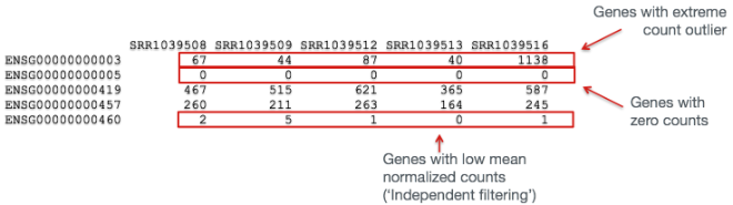 Prior to differential expression analysis it is beneficial to omit genes that have little or no chance of being detected as differentially expressed