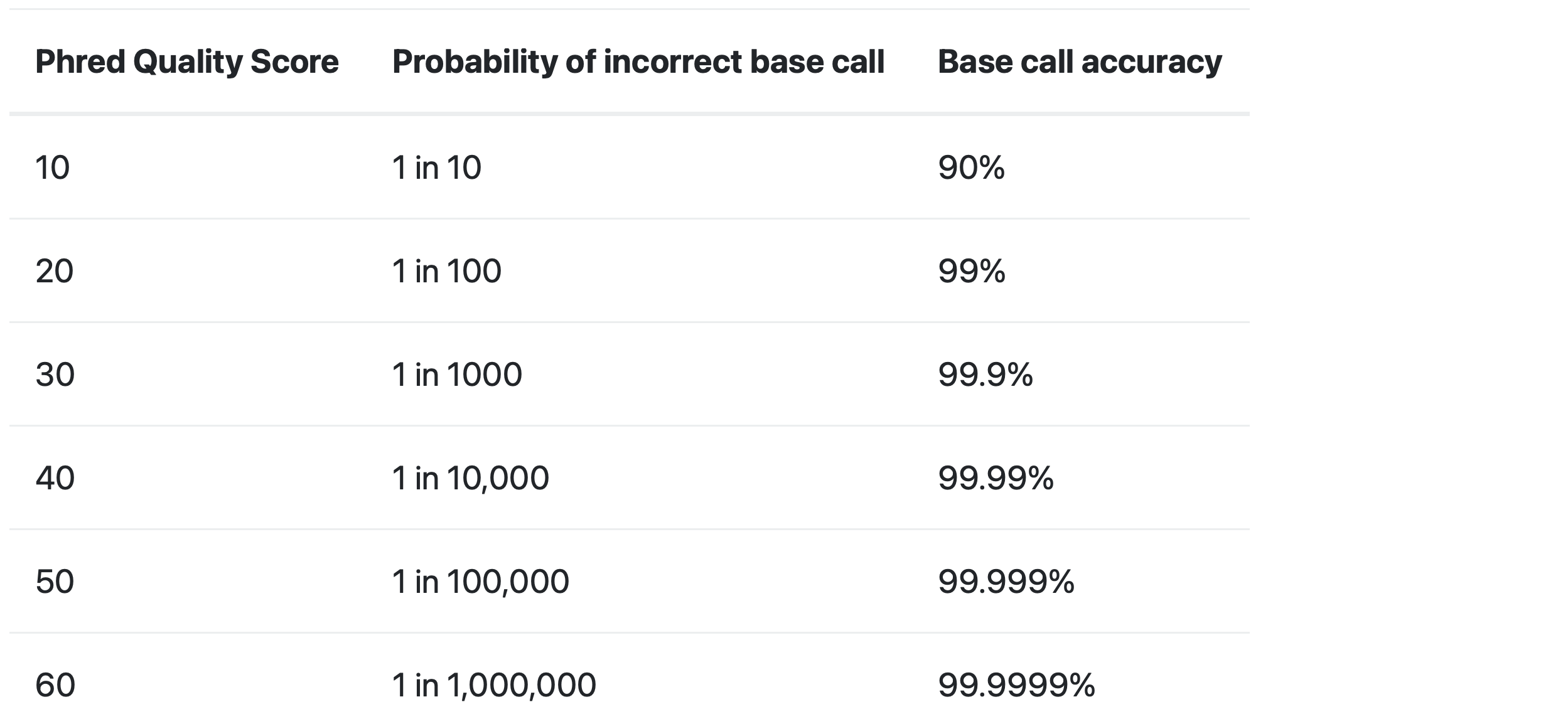 Lo score di qualità è usato per identificare la probabilità di corretta identificazione del corrispondente nucleotide.